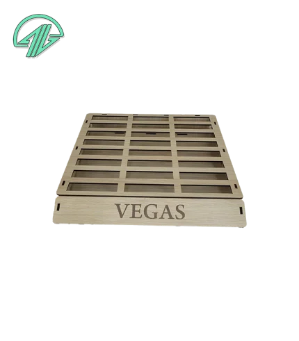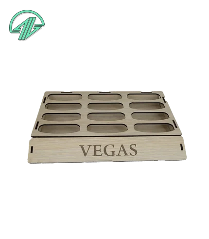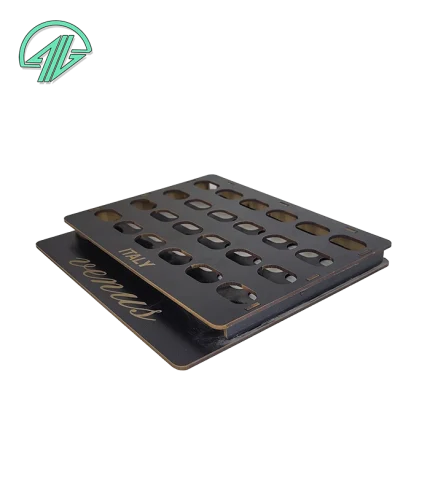 استند رژ جامد ۲۴ عددی با طراحی ویژه برای پوکه‌های بیضی ۲۹×۱۷ میلی‌متری. ساخته شده از MDF سه میل با برش دقیق. قابل سفارش در رنگ‌های مشکی، سفید و کرم. مناسب استفاده در فروشگاه‌ها، سالن‌های زیبایی و میز آرایش شخصی. کد محصول: 2208.