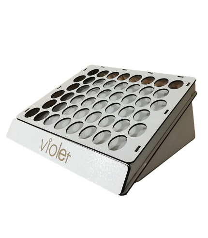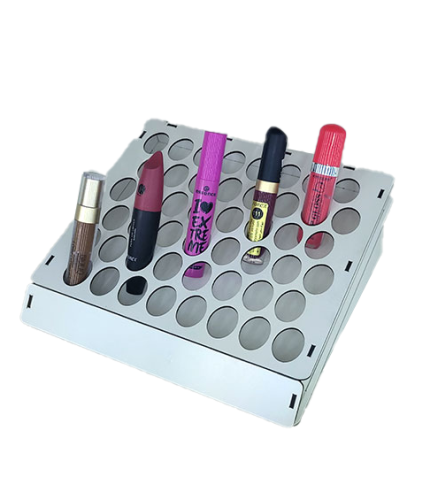 ستند شیب‌دار رژ مایع ۳۶ عددی با حفره‌های دایره‌ای ۱۷×۱۹ میلی‌متر، ساخته‌شده از MDF با طراحی حرفه‌ای. مناسب برای چیدمان منظم و نمایشی رژهای مایع در فروشگاه‌ها و سالن‌های آرایشی. موجود در رنگ‌های مشکی، سفید و کرم.