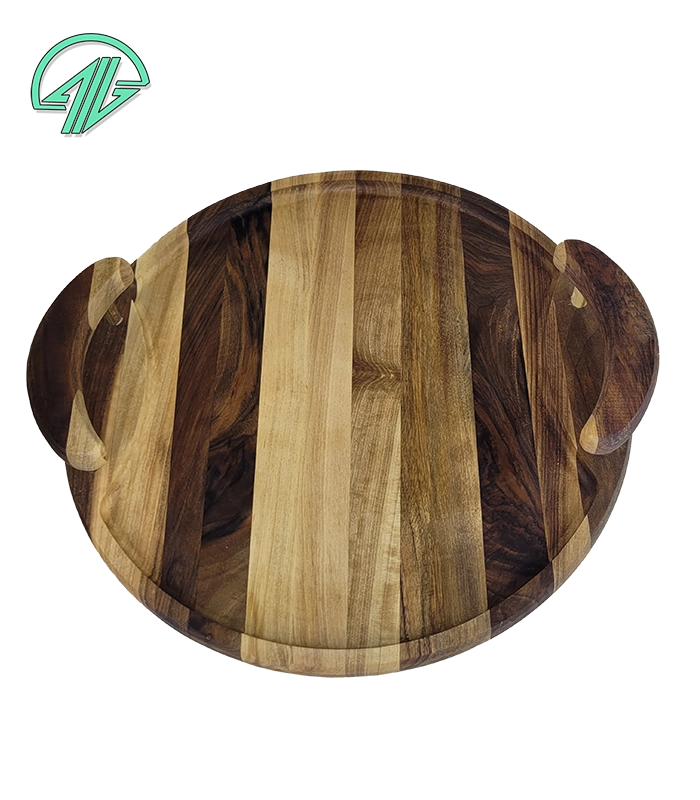 سینی دایره ای 32 سانتی _چوب گردو -دسته چوبی – 5102