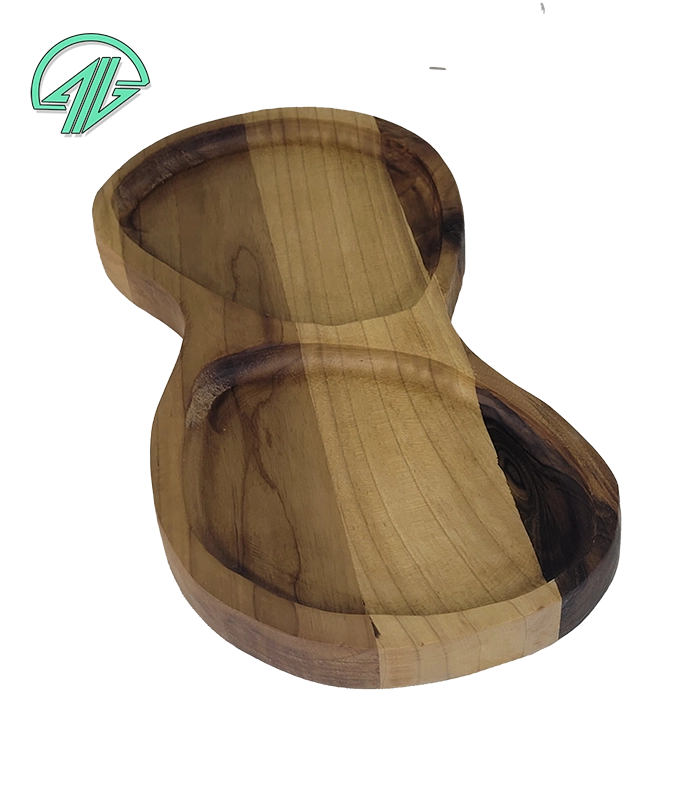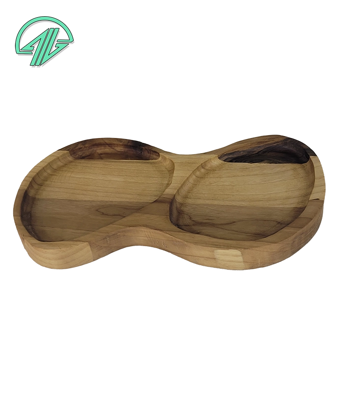 آجیل‌خوری بیضی‌شکل دو خانه‌ای از چوب گردو، با طراحی ساده و طبیعی برای سرو شیک آجیل، تنقلات یا شکلات. انتخابی کاربردی و زیبا برای دکور یا پذیرایی.