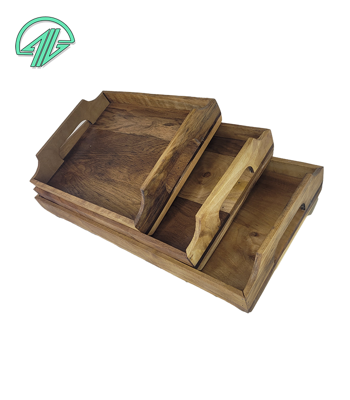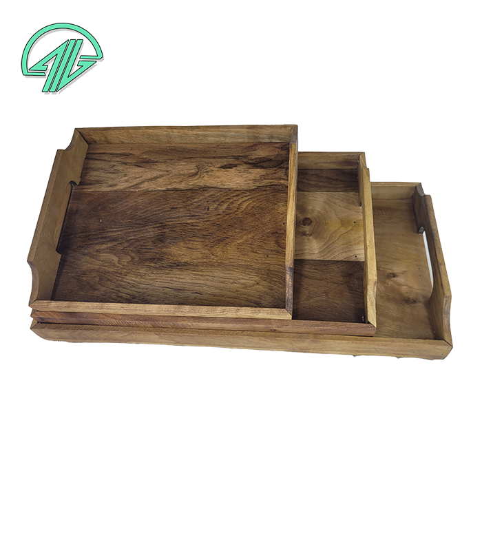 ست سه‌تکه سینی مربعی از چوب گردوی طبیعی با طراحی ساده و کاربردی؛ مناسب برای سرو، دکور یا چیدمان خاص روی میزهای پذیرایی یا آشپزخانه.